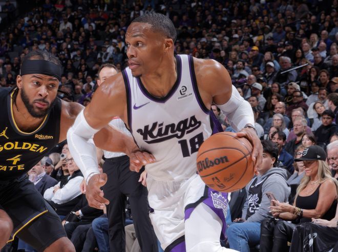 国王上一场惜败掘金,拿着1年无保障底薪的威少,空砍26分12篮板6助攻,但整个球队问题很大,国王竟然会摆出双控卫+双分卫+萨博尼斯的首发阵容,让威少去四号位顶防戈登,威少表现越来越好,但球队整体很挣扎。赛前国王这边也宣布,拉文因背部伤势缺席,萨博尼斯肋骨伤势休战。国王只剩下威少和德罗赞带队。回顾一下比赛,开局穆迪就顶着威少完成上篮,威少立刻回应三分球!库明加内外开花,德罗赞联合施罗德逐渐迫近比分。中段理查德续上三分球,库明加和威少对飙。