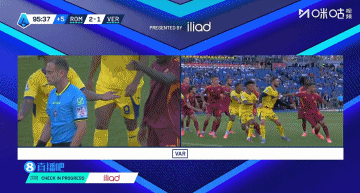 第90+5分钟,维罗纳开出前场左路任意球到禁区内,吉福特-奥尔班前点包抄抢射破门,随后VAR介入,主裁判判罚吉福特-奥尔班手球犯规在先,进球无效!↓